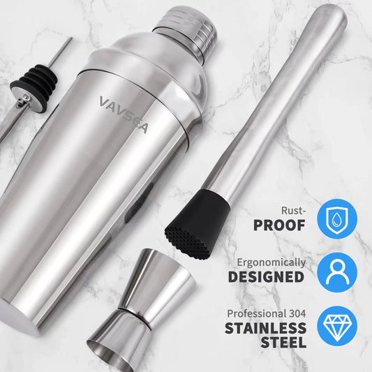 • Cocktail Shaker Set with Rotatable Stand, Mixology Bartender Kit Bar Tool Set for Drink Mixing Home Lounge Party Bar Accessories with Straws & Spoon, Silver, 19Pcs
